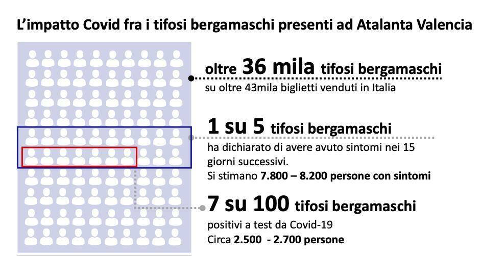 - dopo la partita, oltre 1/5 dei tifosi sviluppa sintomi riconducibili al Covid, percentuale decisamente alta per un evento singolo.